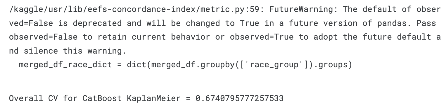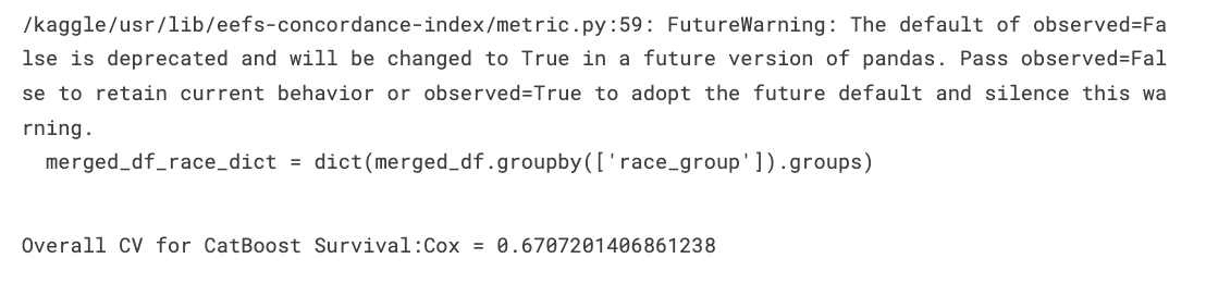 - And the next 2 models (XGBoost Cox, CatBoost Cox) use bullet point one. Discussion about this notebook is here and here.