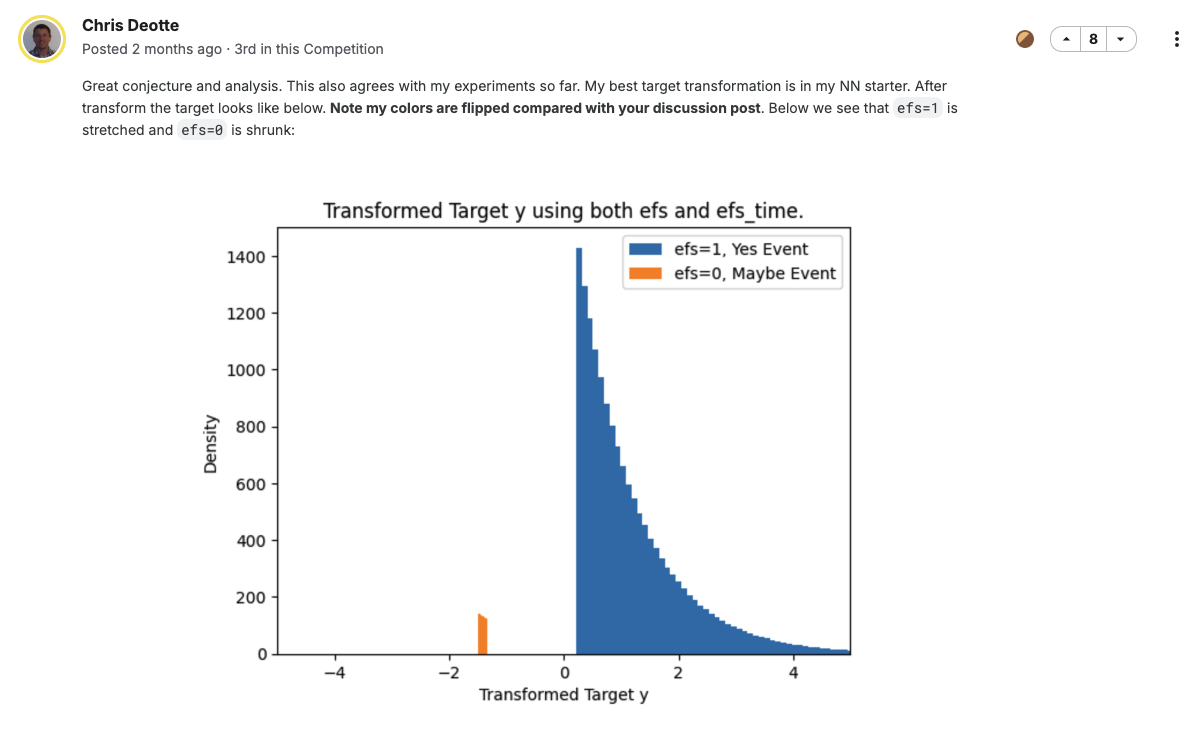 - In the public notebooks of this competition, we can find various target transformations, and most of them are similar.