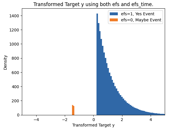 - We tranform the two train targets (efs and efs_time) into a single target (y) and then train regression NN with MSE loss.