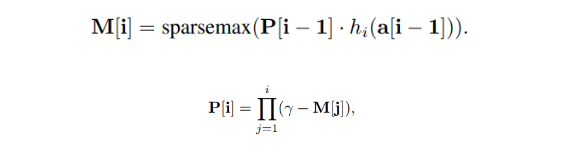 - We use attentive transformer to make those masks: below formula shows how we get those masks.