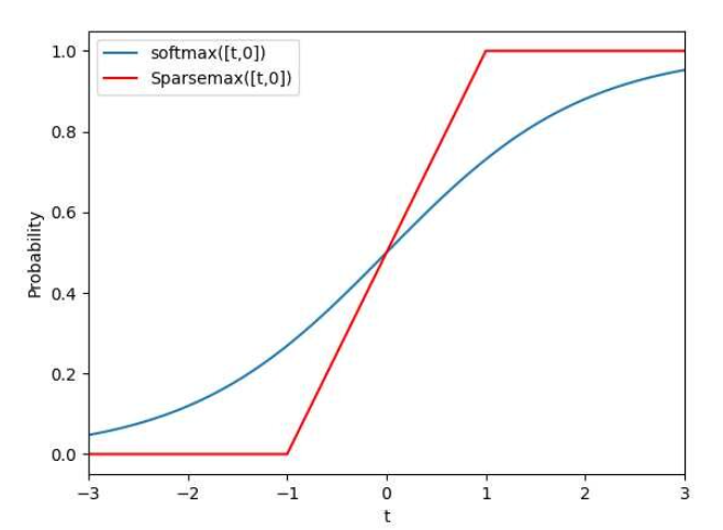 - Unlike softmax that distributes values across the entire domain, Sparsemax works more like Lasso or elasticnet in regression problems because it is more decisive, meaning that it marks important features as 1 and unimportant ones as 0 when creating masks.