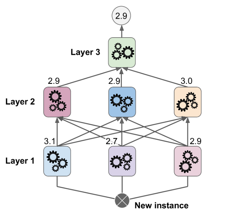 It is also possible to train multiple blenders at the same time, which makes a form of 2 layers (prediction layer and blending layer).