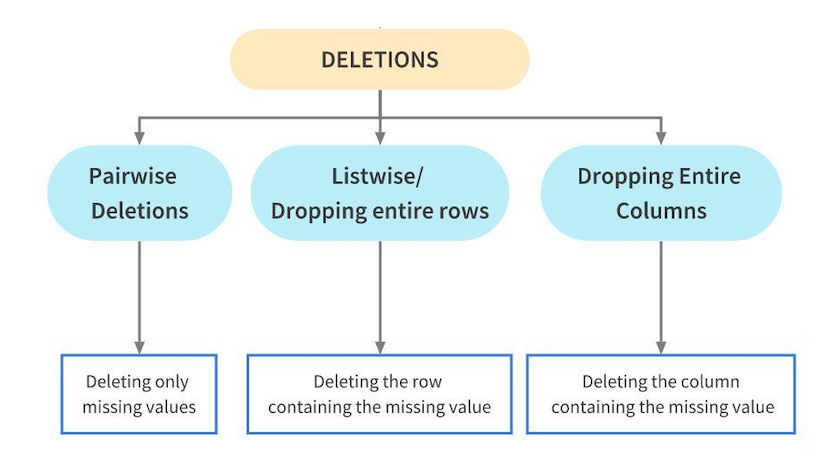 - Thus, we should only delete the missing values from a dataset if their proportion is very small.