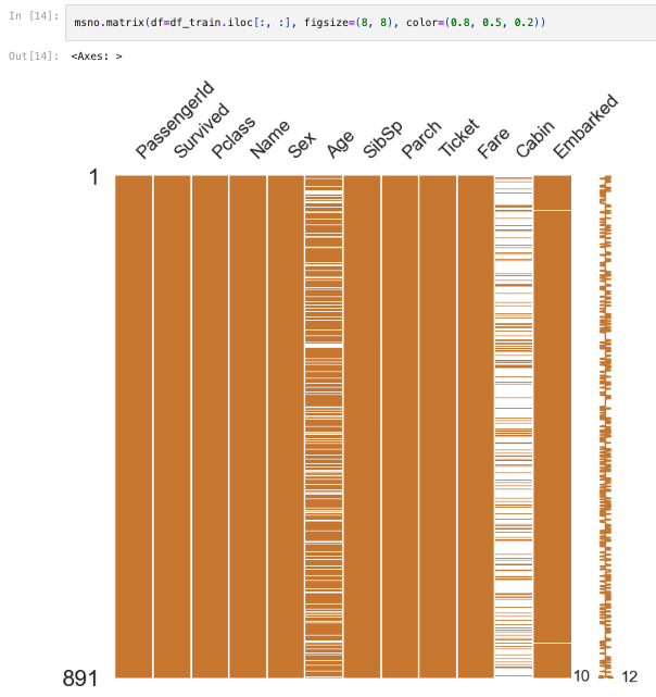 msno.matrix(df=df_train.iloc[:, :], figsize=(8, 8), color=(0.8, 0.5, 0.2))