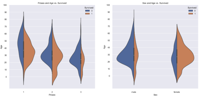 ax[0].set_title('Pclass and Age vs. Survived')