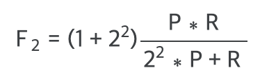 - So we can summarize our model's performance in a single metric, we will use the (( F_2 )) score, which places more importance in recall than precision. Formally, it is defined as: