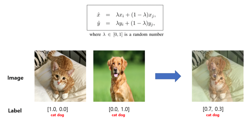 - Mixing Images is a technique that performs Weighted Linear Interpolation between two images using a λ value between 0 and 1, where the label is also assigned proportionally to the λ value.