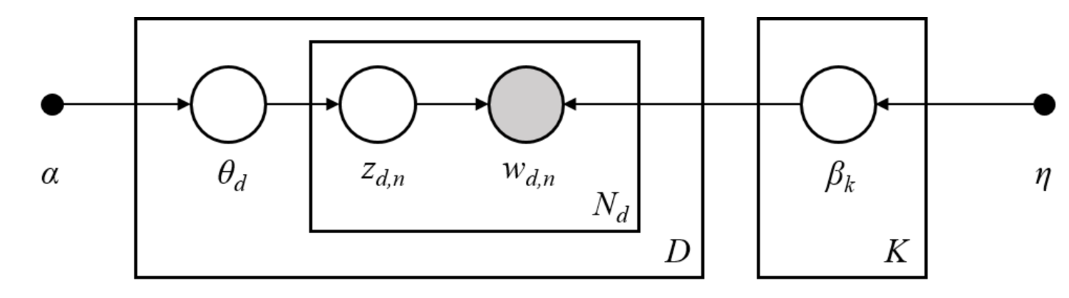 - Topic modeling: the process in which we try uncover abstract themes or "topics" based on the underlying documents and words in a corpus of text
