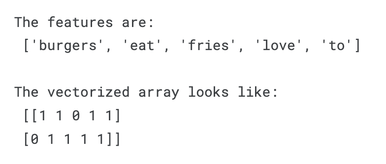 - Vectorization - Converting text into vector format. One of the simplest is the famous bag-of-words approach, where you create a matrix (for each document or text in the corpus). In the simplest form, this matrix stores word frequencies (word counts) and is often referred to as vectorization of the raw text.