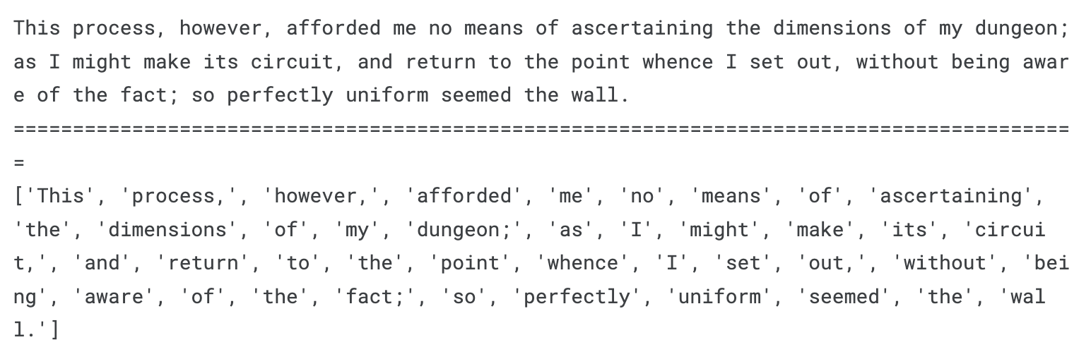 - However as you can see from this first attempt at tokenization, the segregation(분리) of the sentence into its individual elements (or terms) is not entirely accurate.