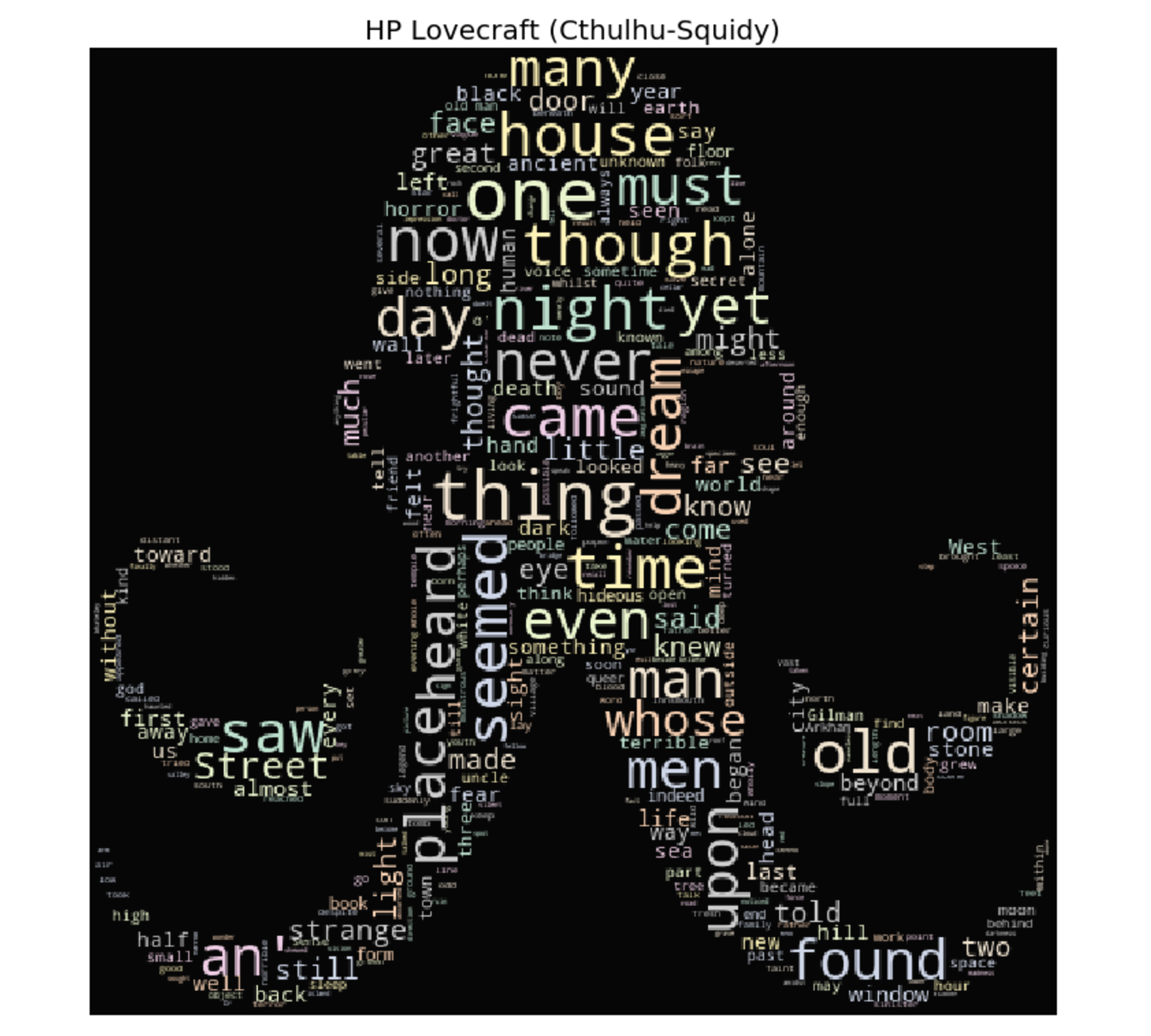 # The wordcloud of Cthulhu/squidy thing for HP Lovecraft
