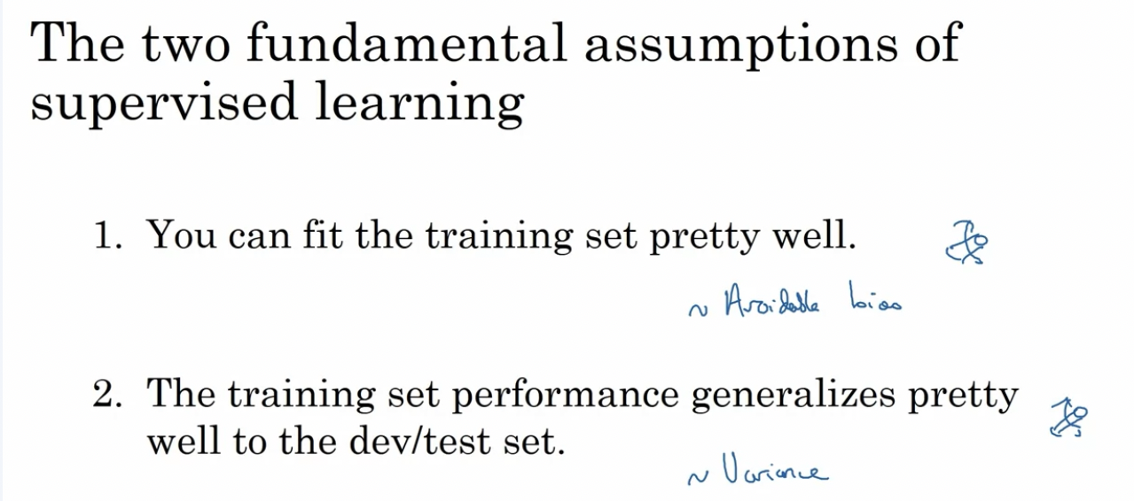 - Bayes Error 혹은 Approximation of Bayes error(human level performance)와 training error의 차이를 "Avoidable Bias"라고 부름