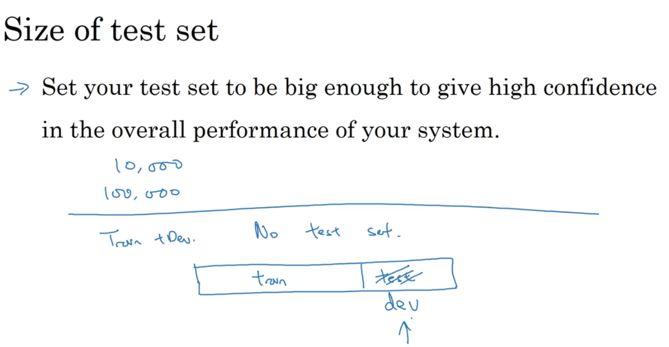 - Dev set 에서의 performance로 test set 에서의 performance를 예측할 수 있어야 하기 때문입니다.