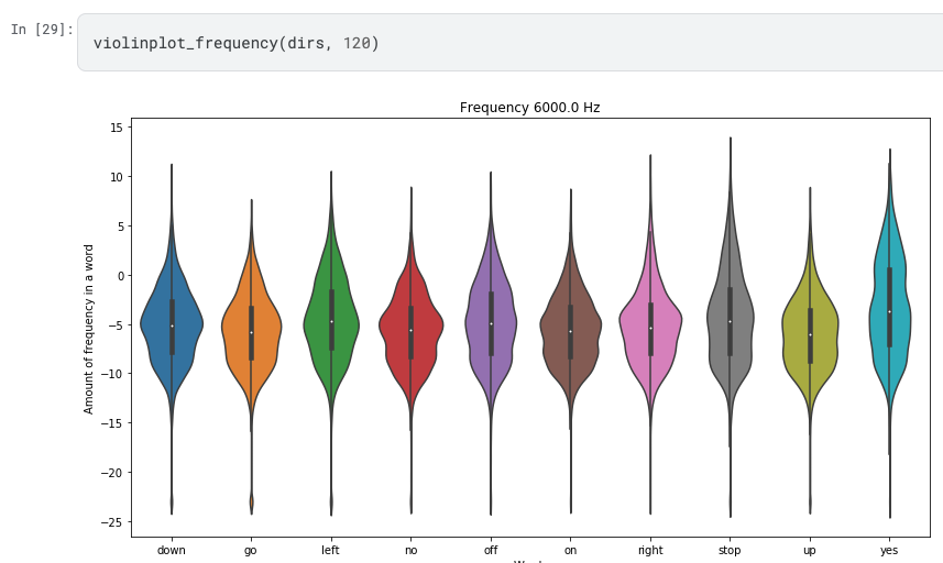 - We have ~160 features for each frame, frequencies are between 0 and 8000. It means, that one feature corresponds to 50 Hz.
