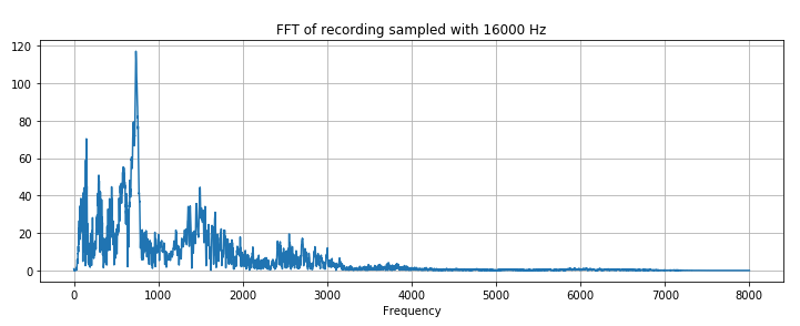 - Frequencies are in range (0, 8000) according to Nyquist theorem.